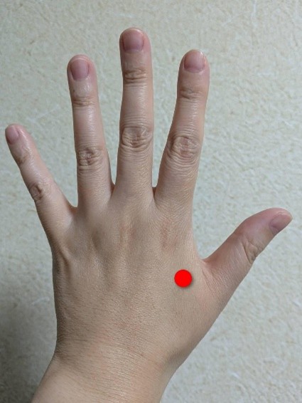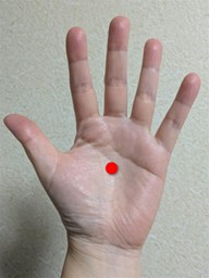 ・場所:手のひら中央、握りこぶしを作ったときに中指が当たる位置